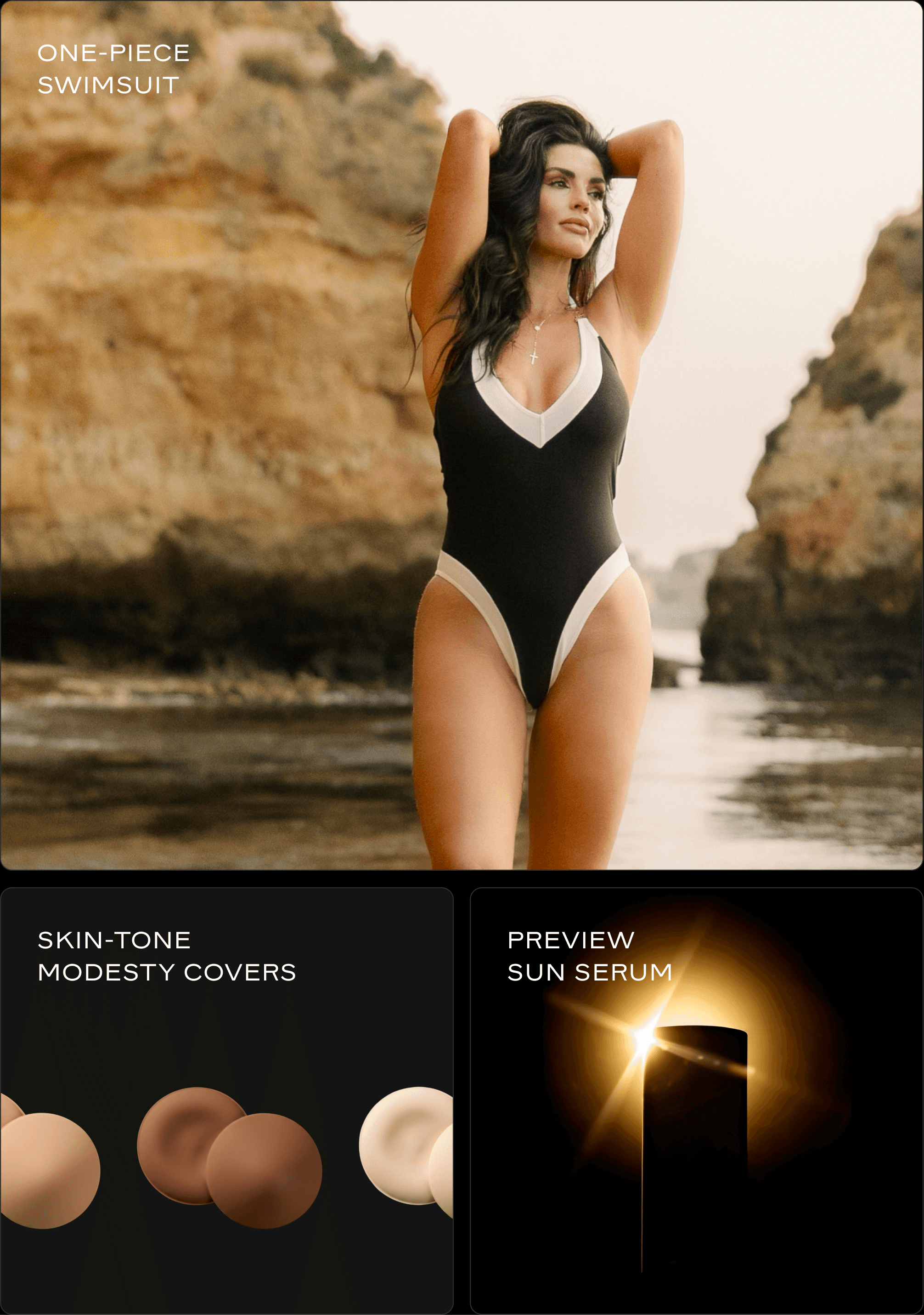 Each suit comes with a sample of our upcoming sun serum—a zinc and antioxidant-rich formula crafted to shield and restore skin under the sun.